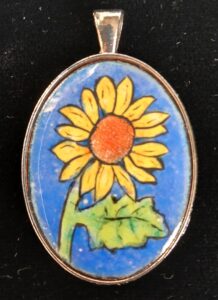 image of a simple sunflower and filling it with colors using both transparent and opaque enamels. We