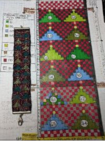 The next meeting is on Saturday, December 14th at Noon in the HGMS Clubhouse middle classroom. Kits are required for this project. You must have a loom to weave this bracelet. Graphic and written pattern , beads, thread, and findings will be provided at a cost of $15.00. Colors will be brighter than shown in the photograph. RSVP to Beading@hgms.org. High quality custom looms are available for purchase at $45.00 if ordered by December 10th; or, bring your own loom set up with 22 warp threads for the 11/0 Delica beads used in this project. The design is simplified by tying the warp ends and using a slide clasp to neatly encompass the last row of beads and knots. You will be a confident loomer upon completion of this project. If you are not familiar with looming I ask that you do a search on the web under bead looming and watch one or two videos on how to set up a loom in advance of the December meeting.