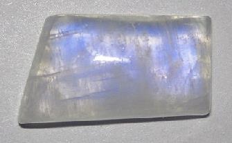 Moonstone is a variety of feldspar and is chemically sodium, potassium, aluminum silicate. Moonstone is typically white with a sheen or iridescence caused by light diffracting from the thin layers of feldspar much as a pearl derives its iridescence from thin layers of calcium carbonate. Moonstones look so much like the moon that early Romans believed they were solidified moonbeams. Moonstone is typically cut as cabochons. Moonstone is found in Australia, Austria, Mexico, Madagascar, Burma, Norway, Poland, Sri Lanka, and the United States. In the United States, locations for finding moonstones are North Carolina, Virginia, Connecticut, and Rhode Island.