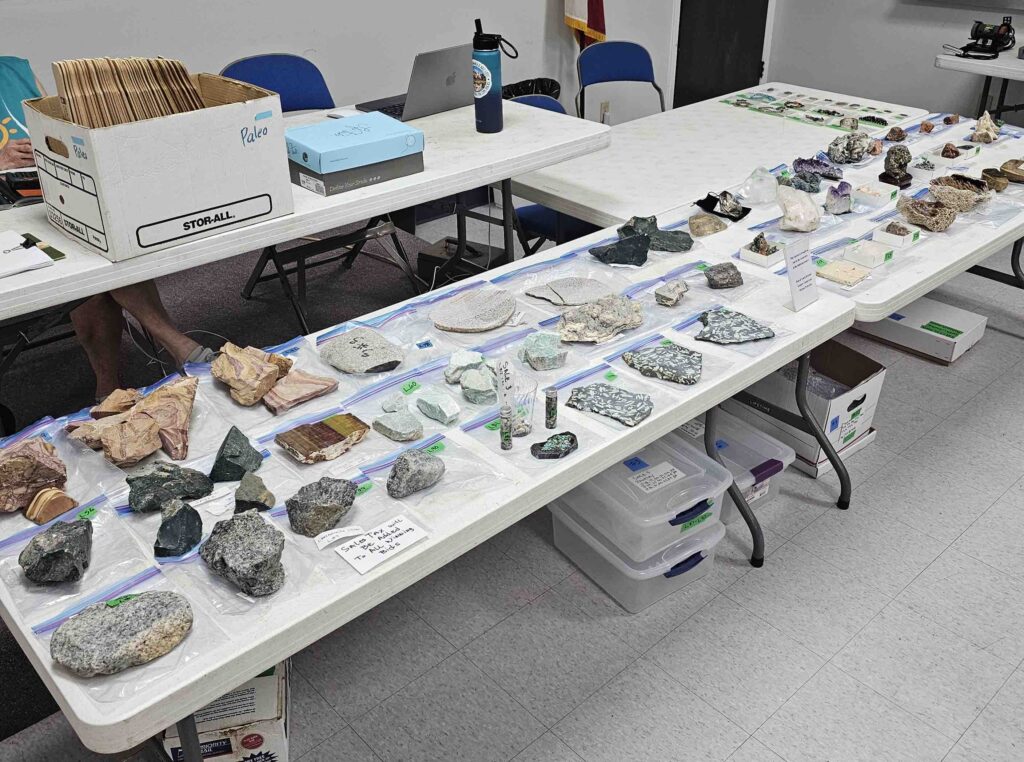 - David and Susan Fitzhugh: They happily shared their rock collection from South Africa. They live in South Africa and only return to the States once or twice a year. The rock collection comes from the Manganese, Zimbabwe, and Namibia areas. You are not allowed to go digging/hunting rocks or fossils on your own accord. You must be with a group or tour to set up a day to dig in certain areas.