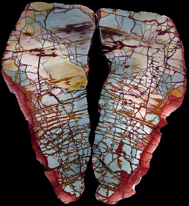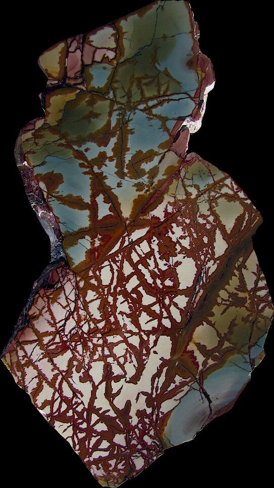 Dead Camel Jasper is a new find compared to the famous porcelain jaspers of Oregon and Idaho, although some lapidaries compare it to those jaspers. It is found in the Dead Camel Mountains of northern Nevada, which were named for the camels imported to serve as beasts of burden, which were lost and died in these mountains. It’s known for shades of red, pink and blue or green, and takes a very good polish. Claims in this area include Dead Camel, Red Falcon, Dead Ringer, Fire Ledge, and Mescalero, among others.