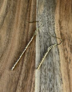 Learn to make a pair of dangle earrings using blacksmith forging techniques modified for jewelry making! The class will cover creating intricate patterns with brass rods and using those to create simple dangle earrings. By using brass rods and gold-filled ear wires we will get the look of gold, without the expense! Each student will create pair of earrings in their chosen length (from ½” to 2”).