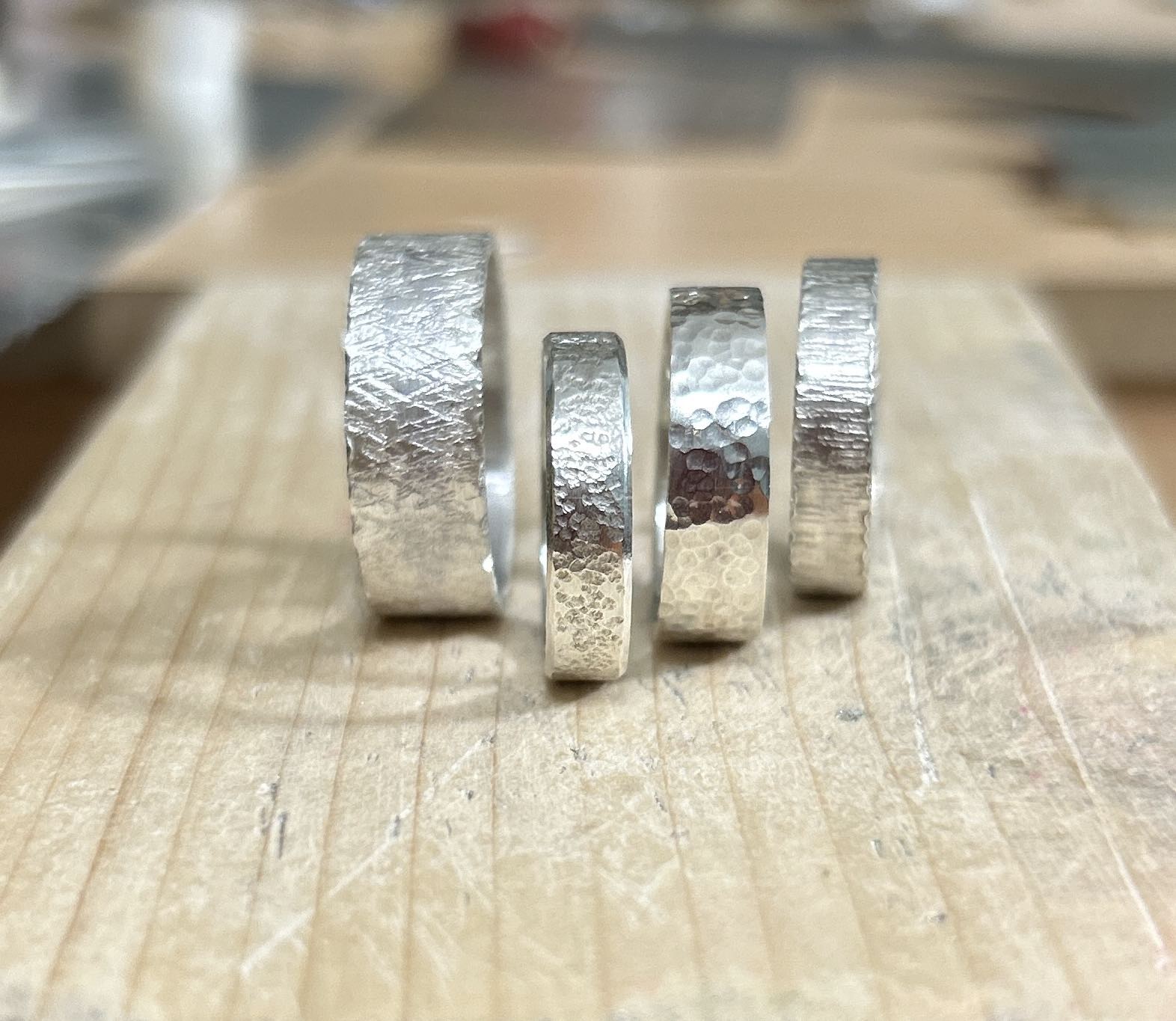 Learn to make and texture a 6mm wide band ring from scratch. The class will cover creating rings and the fundamentals of finishing a piece (the key to making it look professional). If you’ve taken the Textured Stacking Rings class, you’ll see how different working with a wide band from sheet is. Each student will create 1 silver ring.