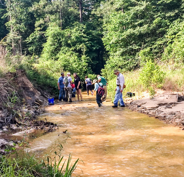 Scott Singleton wrote a summary of the trip, which was published in the July 2016 BBG. He also describes the geology of the area, in which the streams preferentially lie on or near the top of the resistant sticky clay of the Oligocene Catahoula Formation. The petrified wood weathers out of the basal several feet of the overlying Miocene Fleming Formation. He then goes into the identification of wood found in these sediments.