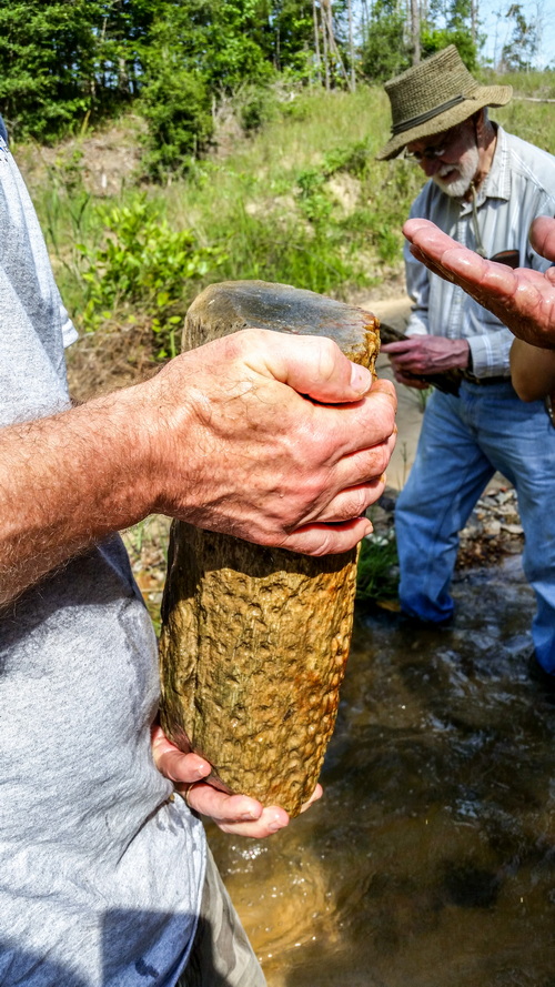 Palm stem found by the author at the point of entry into the stream. This specimen was at my feet as I was standing in the stream describing the geology of the locality. Terry Proctor is shown in the background.